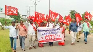 CITU : మంచిర్యాల జిల్లాల్లోని పలువురు అధికారులు గ్రామ పంచాయితీ కార్మికులపై అధిక పనిభారం మోపుతున్నారని సిఐటియు రాష్ట్ర కోశాధికారి వంగూరి రాములు ఆరోపించారు. గురువారం జిల్లా కలెక్టర్ కార్యాలయం వద్ద కార్మికుల అపరిష్కృత సమస్యలను పరిష్క రిం చాలని కోరుతూ సిఐటియు నాయకులు ధర్నా చేపట్టారు. అనంతరం కలెక్టర్ కార్యాలయంలో అధికారులకు వినతి పత్రం అందజేశారు. ఈ సందర్బంగ రాములుతో పాటు సీఐటీయు జిల్లా కార్యదర్శి దుంపల రంజిత్ కుమార్ మాట్లాడుతూ……