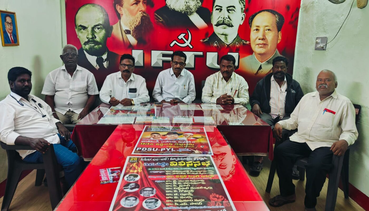 IFTU : కేంద్ర ప్రభుత్వం అవలంభిస్తున్న కార్మిక వ్యతిరేక విధానాలను నిరసిస్తూ బీహార్ లోని కేహాల్గమ్ లో IFTU జాతీయ జనరల్ కౌన్సిల్ సమావేశాన్ని నిర్వహిస్తున్నామని ఆ యూనియన్ రాష్ట్ర అధ్యక్షులు ఐ కృష్ణ తెలిపారు. మంగళ వారం పెద్దపల్లి జిల్లా గోదావరిఖని యూనియన్ కార్యాలయంలో నిర్వహించిన యూనియన్ సమావేశంలో మాట్లాడారు. ఈ సందర్బంగా ఆయన మాట్లాడుతూ…..