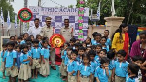 పాఠశాల డైరెక్టర్ చరణ్ రెడ్డి మాట్లాడుతూ రాఖీ అనేది కేవలం కుటుంబం వరకే పరిమితం కాకూడదు. సమాజాన్ని రక్షించే ప్రతి ఒక్కరికీ ఈ పండుగలో ప్రాధాన్యత ఉంటుంది. ఈ సందర్బంగా మన పిల్లలు స్వయంగా తయారుచేసిన రాఖీలను పోలీస్ అధికారులకు కట్టడంతో ఇచ్చిన గౌరవం, ప్రేమ చాలా ఆనందంగా ఉందన్నారు. ఈ కార్యక్రమంలో హెడ్ కానిస్టేబుల్ దివాకర్ , జన్మభూమి నగర్ వాసులు పాల్గొన్నారు