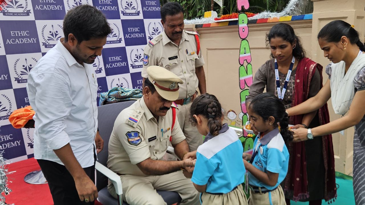Rakhi : మంచిర్యాల జిల్లా కేంద్రంలోని ఎథిక్ అకాడమీలో రక్షా బంధన్ వేడుకలు ఘనంగా జరిగాయి. ఈ కార్యక్రమంలో పాఠశాల యాజమాన్యంతో పాటు పోలీస్ అధికారులు, ఉపాధ్యాయులు, తల్లిదండ్రులు, విద్యార్థులు పాల్గొన్నారు. ఈ సందర్బంగా పలువురు వక్తలు మాట్లాడుతూ …..
